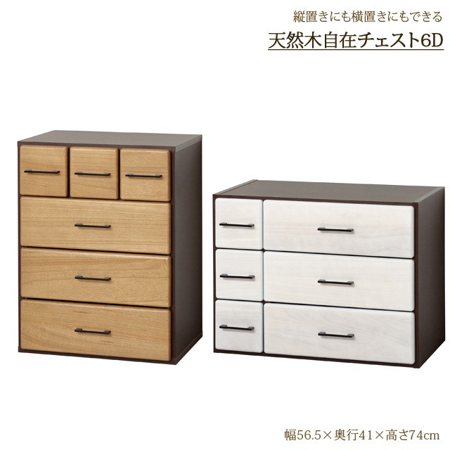 天然木自在チェスト6D(ホワイト)(ライトブラウン) 【送料無料】※北海道・沖縄・離島は別途条件あり