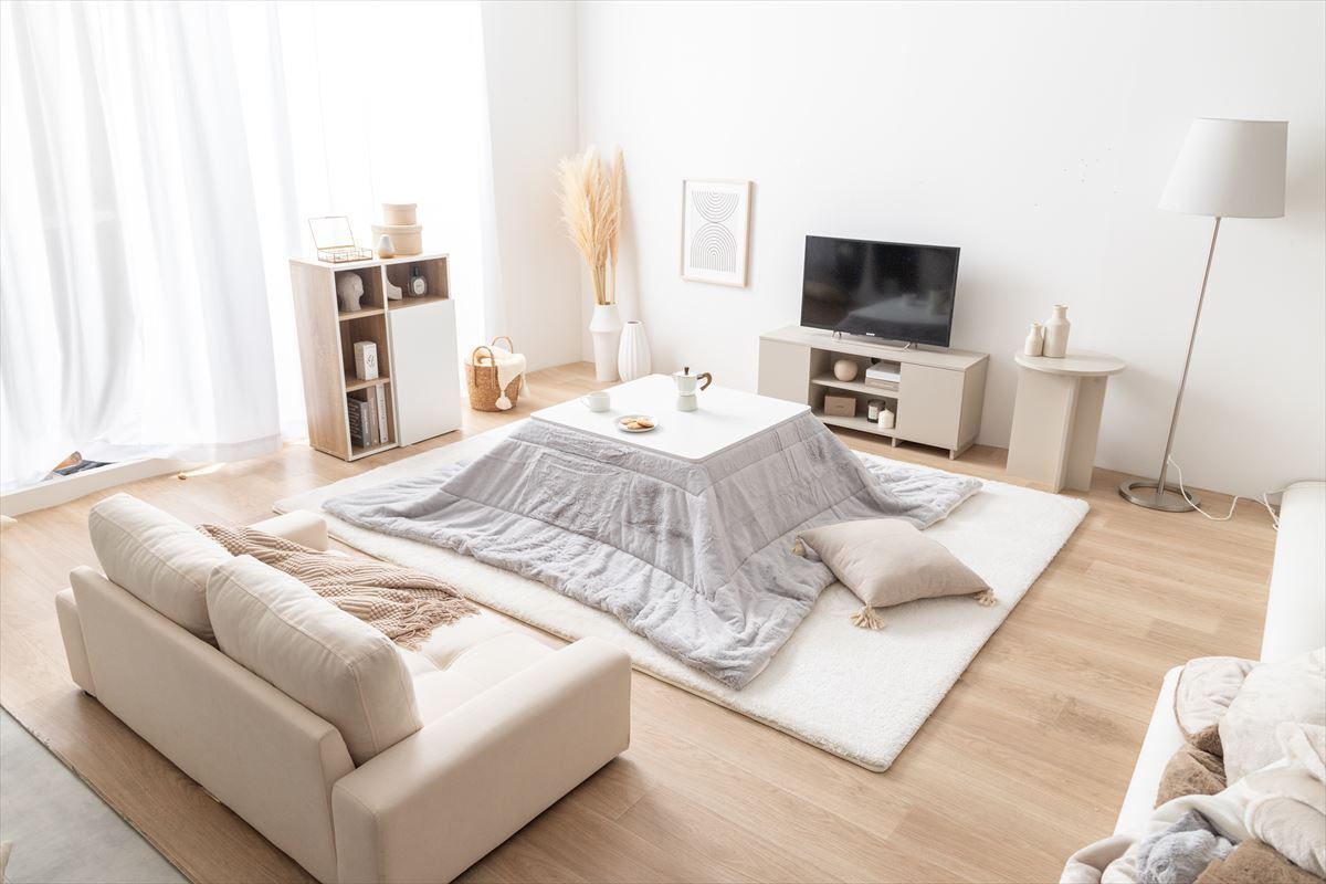 コンパクトサイズでお部屋に省スペースで置けるこたつテーブル