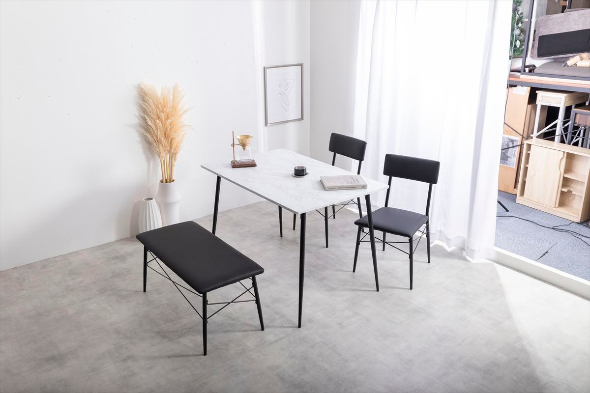 石目柄とブラックスチールを組み合わせた『Evie(エヴィ)』シリーズのダイニングセット