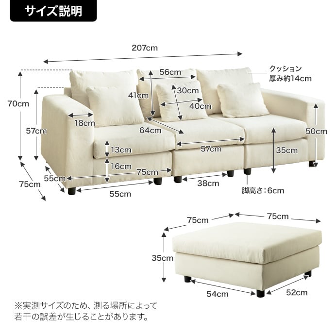 【商品重量】コーナーソファ:約15kg、1人掛けソファ:約13kg、オットマン:約10kg