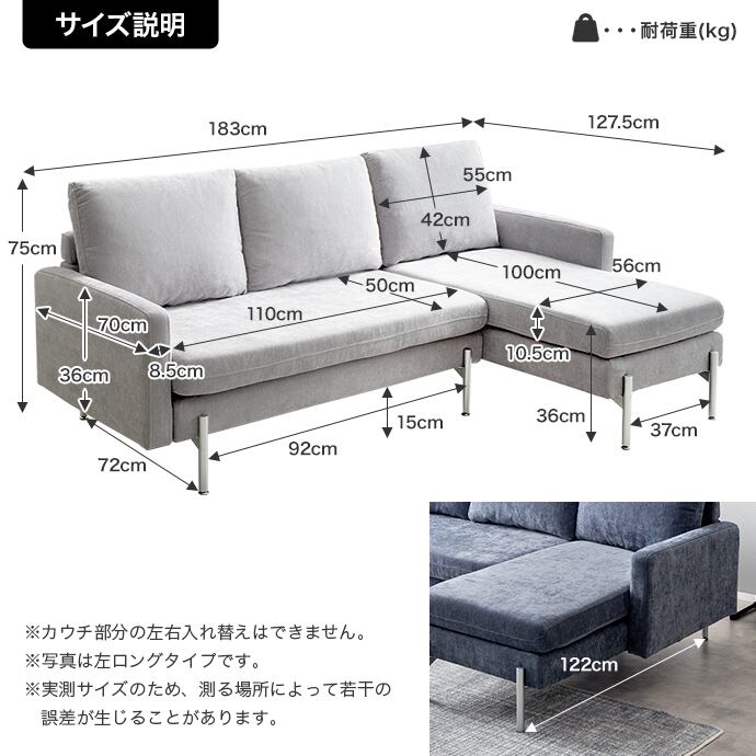 【耐荷重】ソファ:約180kg、カウチ:約180kg