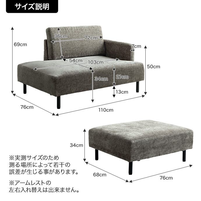 【ソファ】幅110cm×奥行76cm×高さ69cm(座面高:34cm)