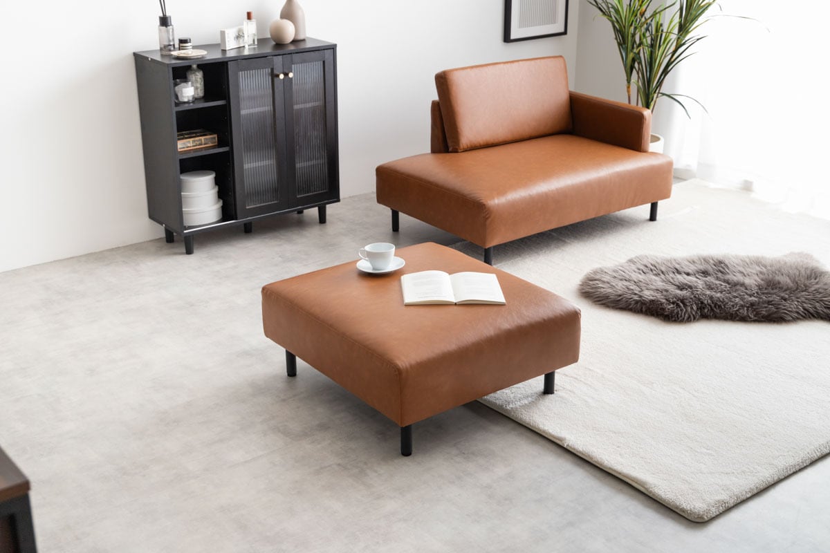 広々座面でゆったりくつろげる『Cody(コーディ)』コンセント・オットマン付き2人掛けソファ