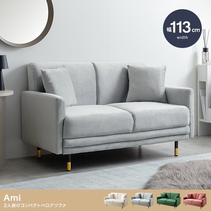 高級感のあるベロア生地を使用した、上質なデザインの『Ami(アミー)』2人掛けコンパクトベロアソファ