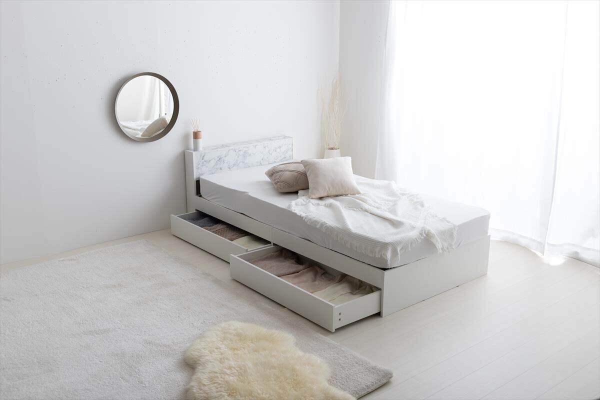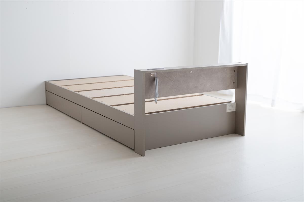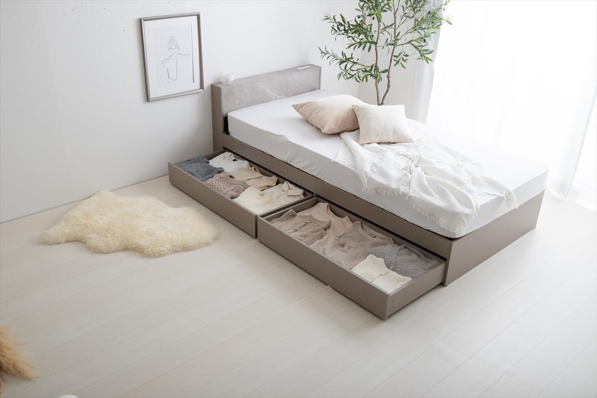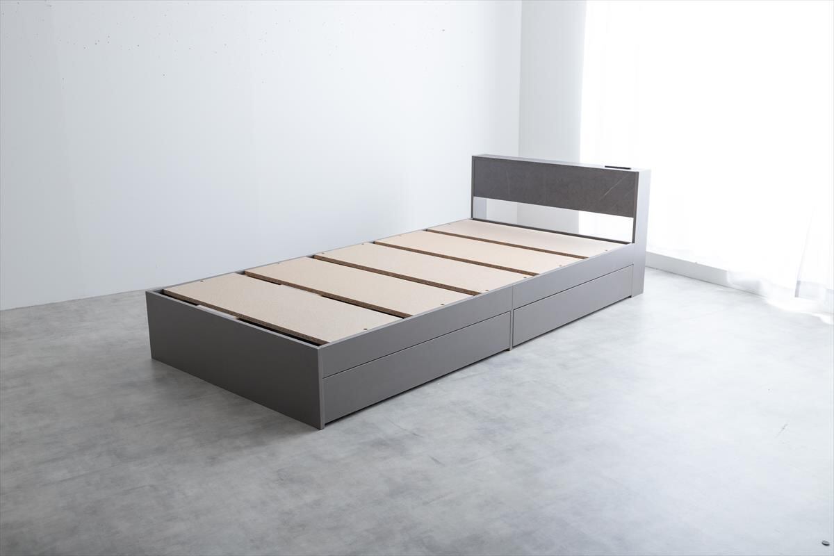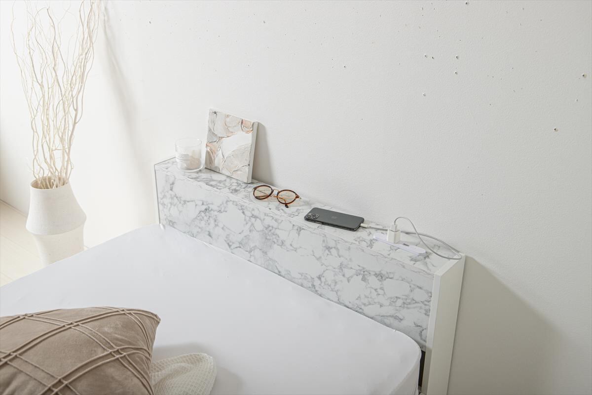 ストーン柄が高級感漂う『Raffine(ラフィネ)』宮棚&コンセント付き引き出し収納ベッド