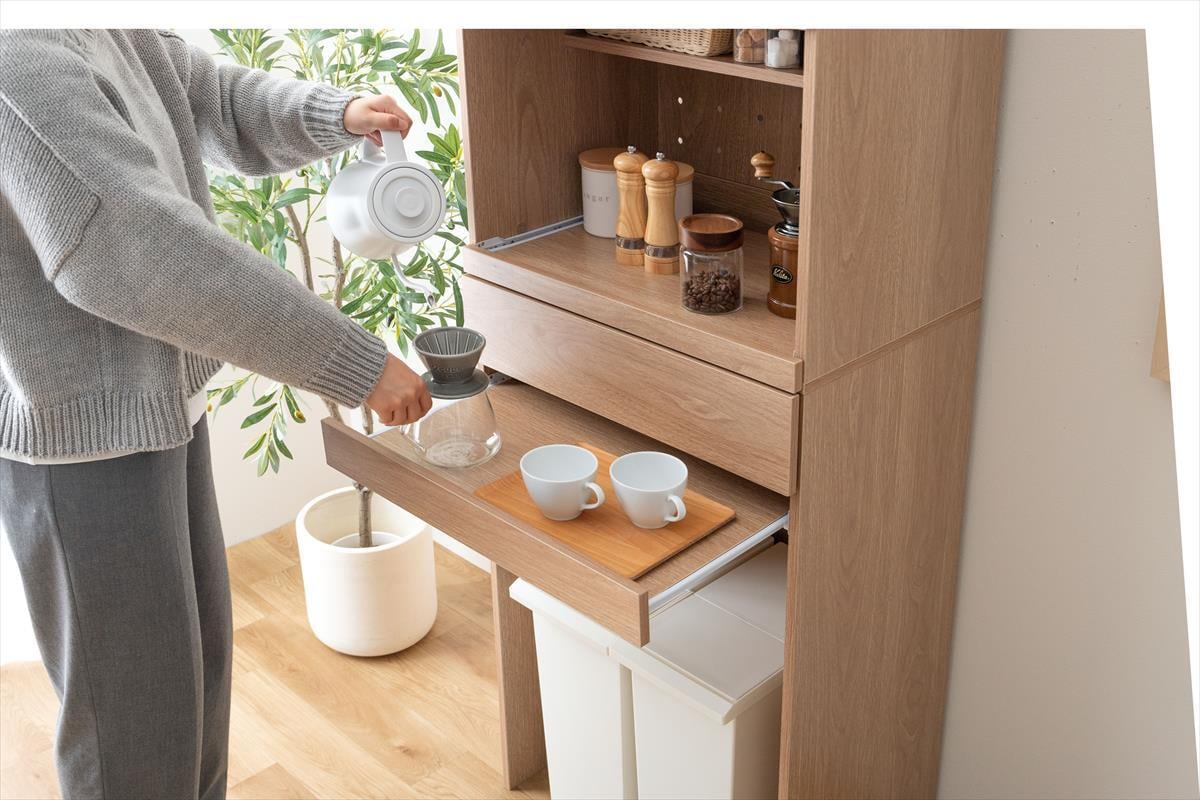 限られたスペースを無駄なく使える『Keuken(クークン)』ゴミ箱収納付きレンジ台