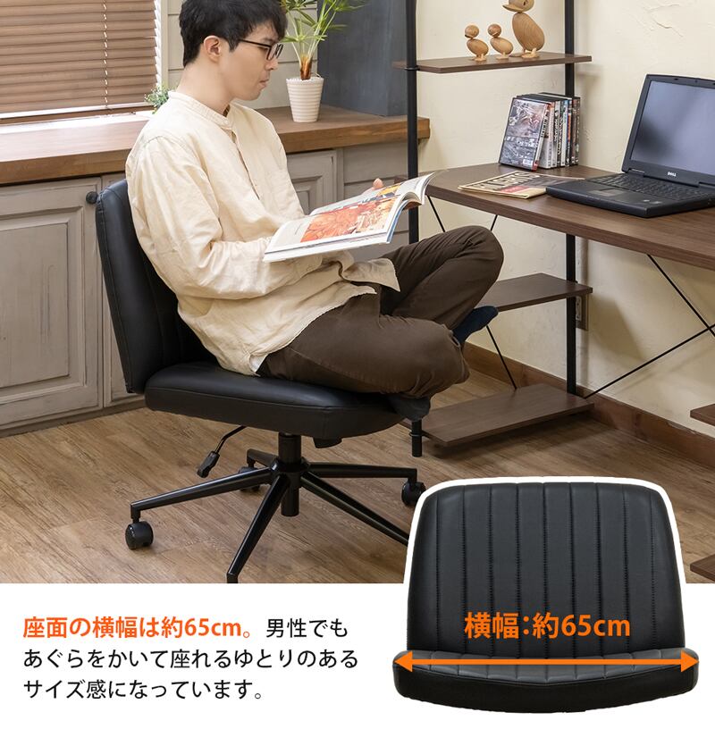 座面の上で胡坐がかける幅広オフィスチェア