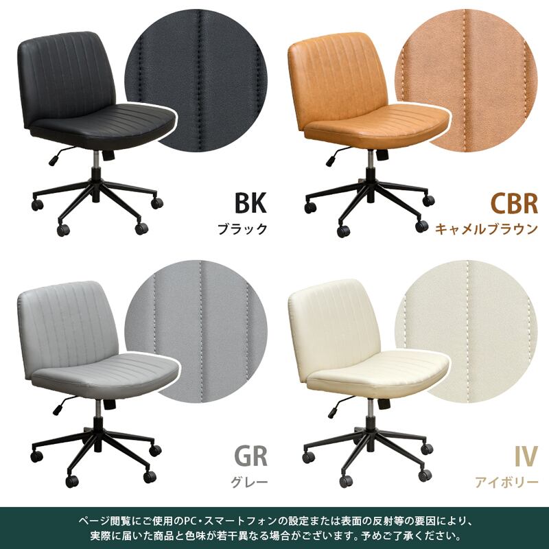 ブラック(BK)、キャメルブラウン(CBR)、グレー(GR)、アイボリー(IV)の4色展開です