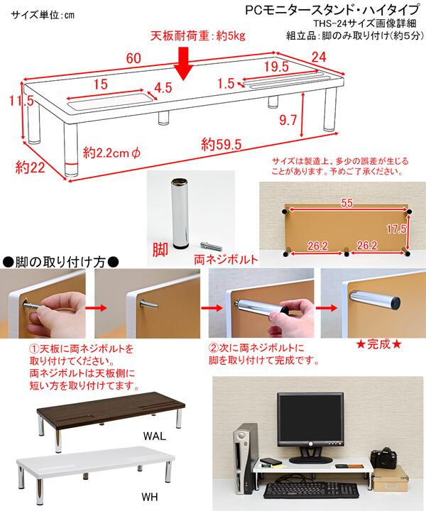 組立式(約5分/脚をネジ込むのみ)1梱包