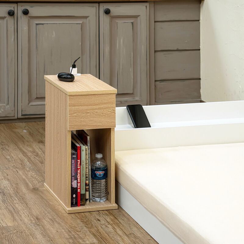 ベッドやソファサイドで役立つ幅約20センチとスリムなサイドテーブルです